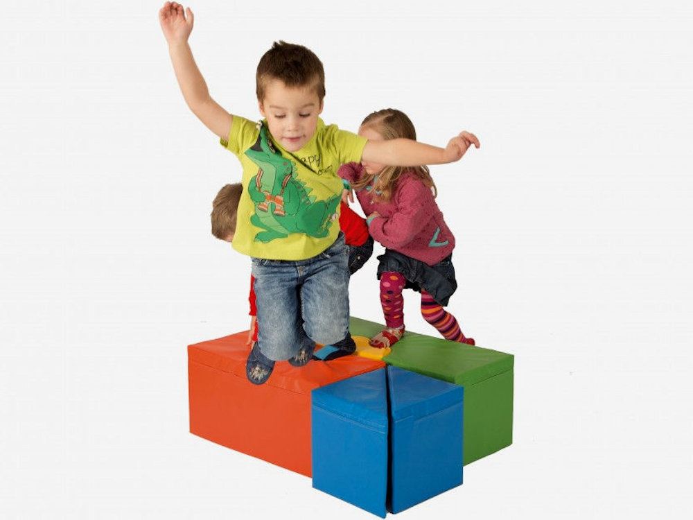 Durch die weiche Beschaffenheit der Softbausteine, sowie dem hautfreundlichen Planenstoff der Motorik-Bausteine von Bänfer wird freies und kreatives Verhalten der Kinder von Beginn an gefördert.