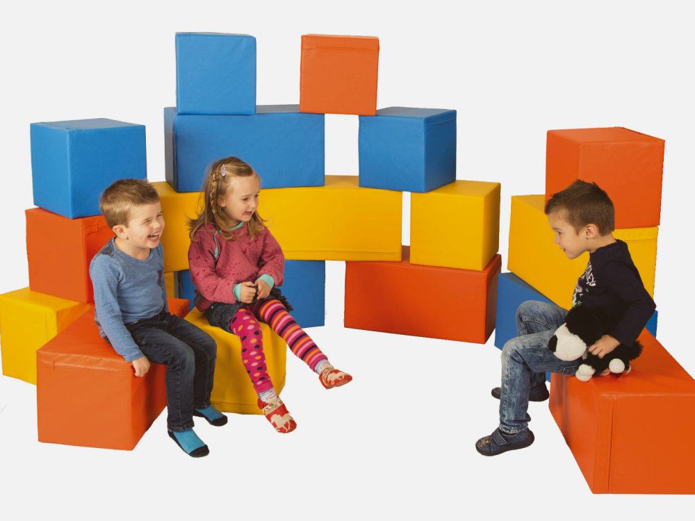Durch die weiche Beschaffenheit der Softbausteine, sowie dem hautfreundlichen Planenstoff der Motorik-Bausteine von Bänfer wird freies und kreatives Verhalten der Kinder von Beginn an gefördert.