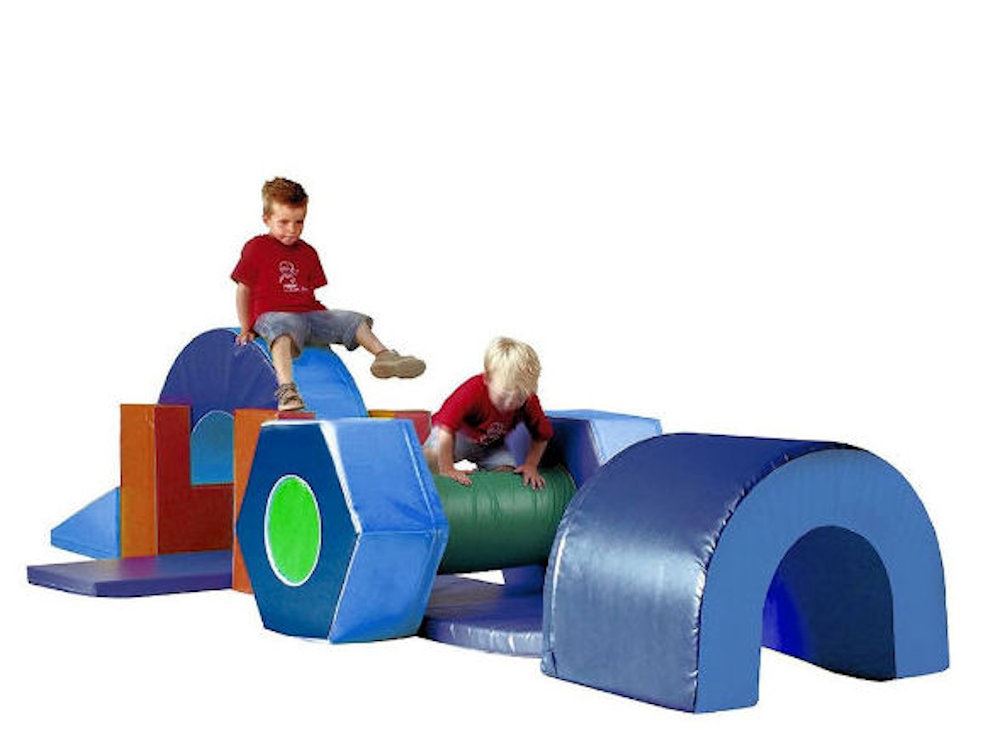 Damit das Spielen auch sicher ablaufen kann sorgen weiche Kernmaterialien und leichter Planenstoff als Bezug.