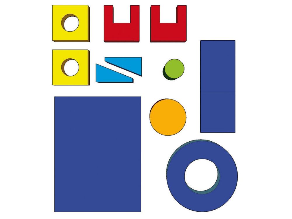 Die einzelnen Bausteinsätze und Motorik-Elemente sind nach einem Größenschema entwickelt. Wir empfehlen Kombinationen der Schaumstoff-Bausteine mit gleichem Größenschema. Wir unterscheiden zwischen MINI, MEDI und MAXI.