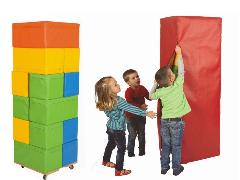 Durch die weiche Beschaffenheit der Softbausteine, sowie dem hautfreundlichen Planenstoff der Motorik-Bausteine von Bänfer wird freies und kreatives Verhalten der Kinder von Beginn an gefördert.
