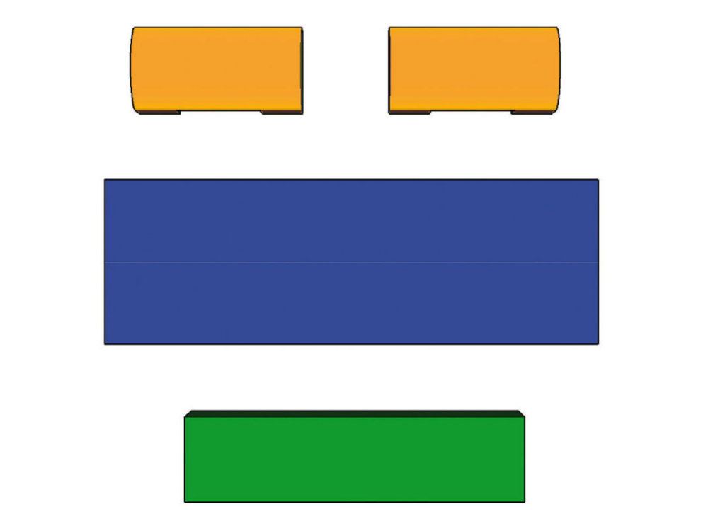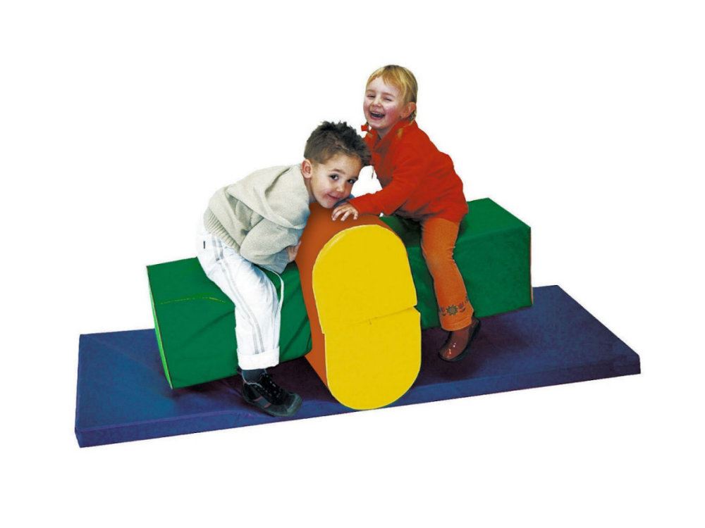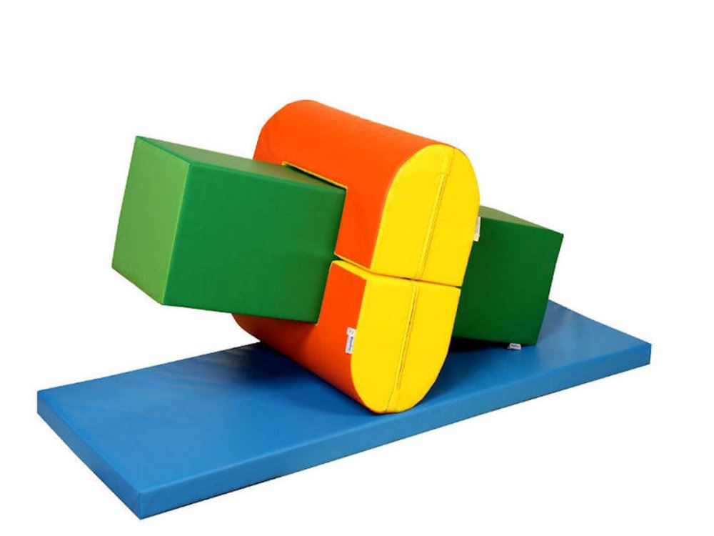Das komplette Motorik-Element besteht aus weichem Schaumstoff mit Leichtplanenstoffhülle. Die Turnmatte und die Bauelemente können auch einzeln zum Turnen oder Toben eingesetzt werden.