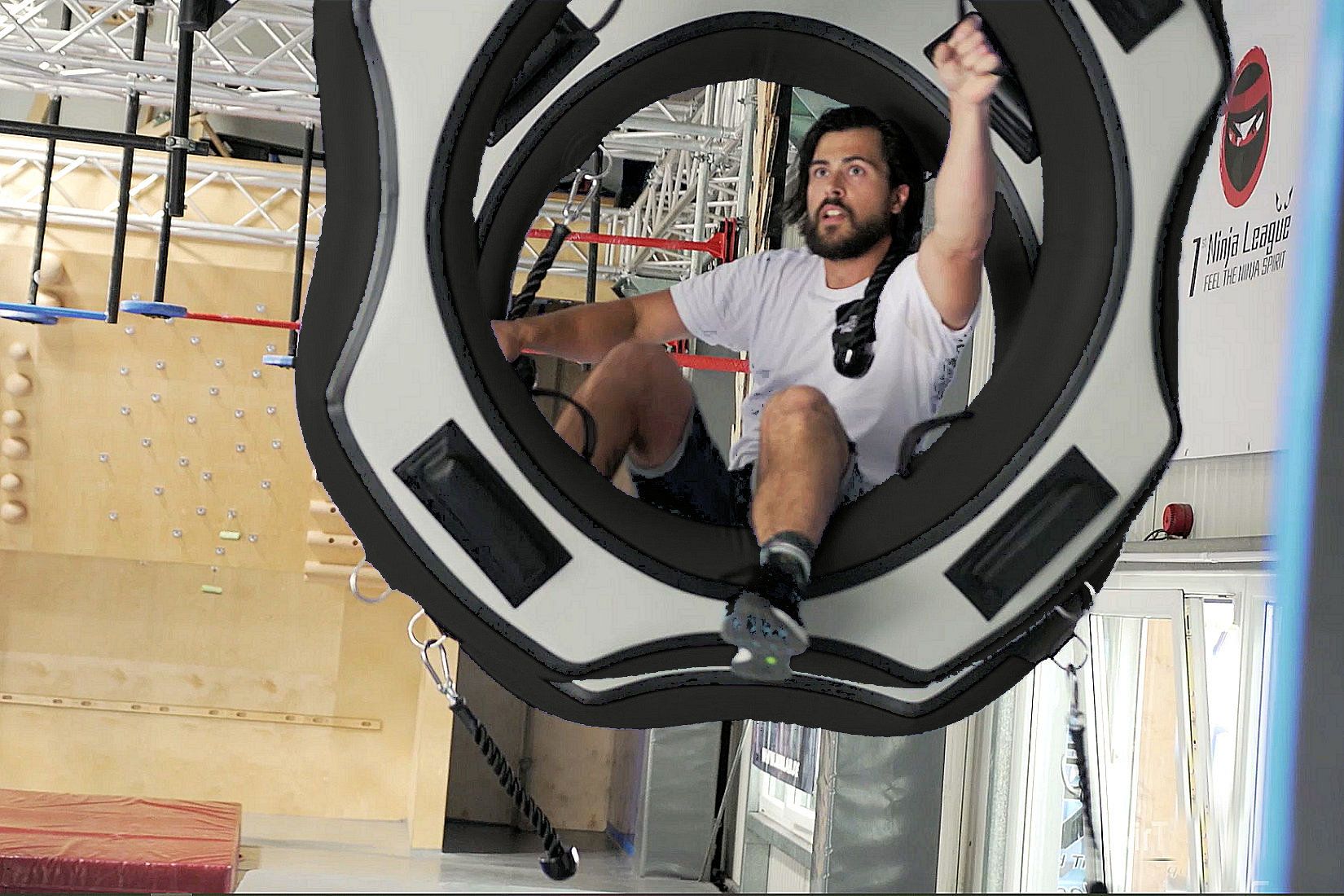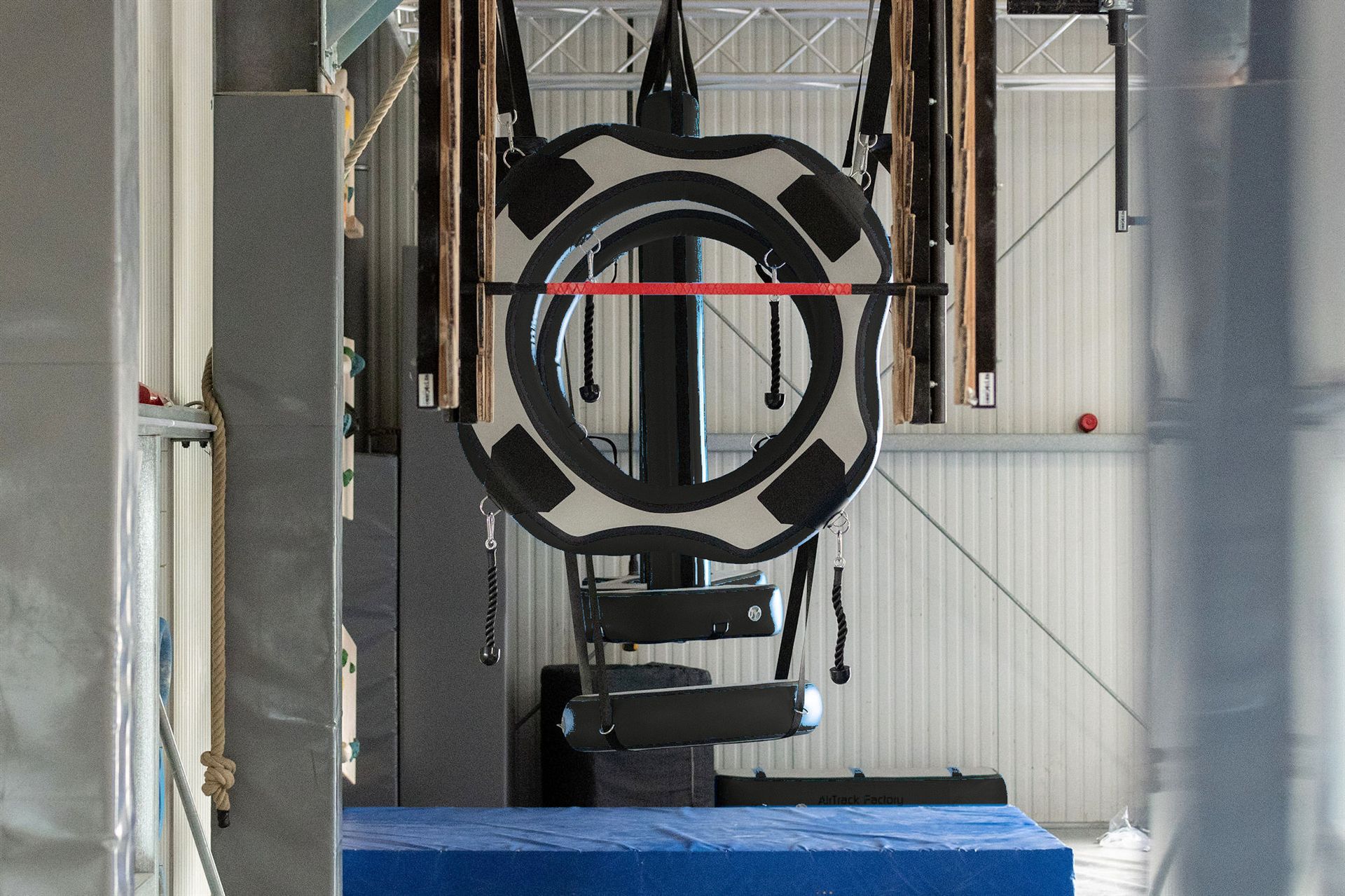 Luftgefülltes, schwebendes Hinderniss für den Ninja-Sport mit Halterungen. Die Obstacles von Airtrack Factory - zum überqueren und hangeln - lassen sich perfekt kombinieren, um einen abwechslungsreichen Ninja-Parcour mit unterschiedlichen Schwierigkeitsgraden zu gestalten. Mit den baumelnden Gegenständen lassen sich Präzision, Kraft, Ausdauer und Balance trainieren.