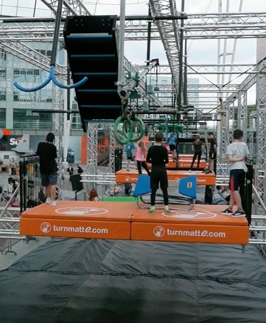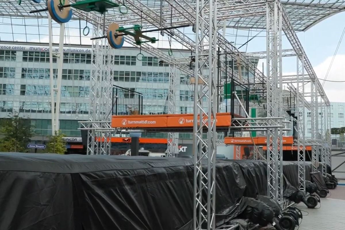 Ninja Warrior am Münchener Flughafen mit unseren Podesten und Plattformen