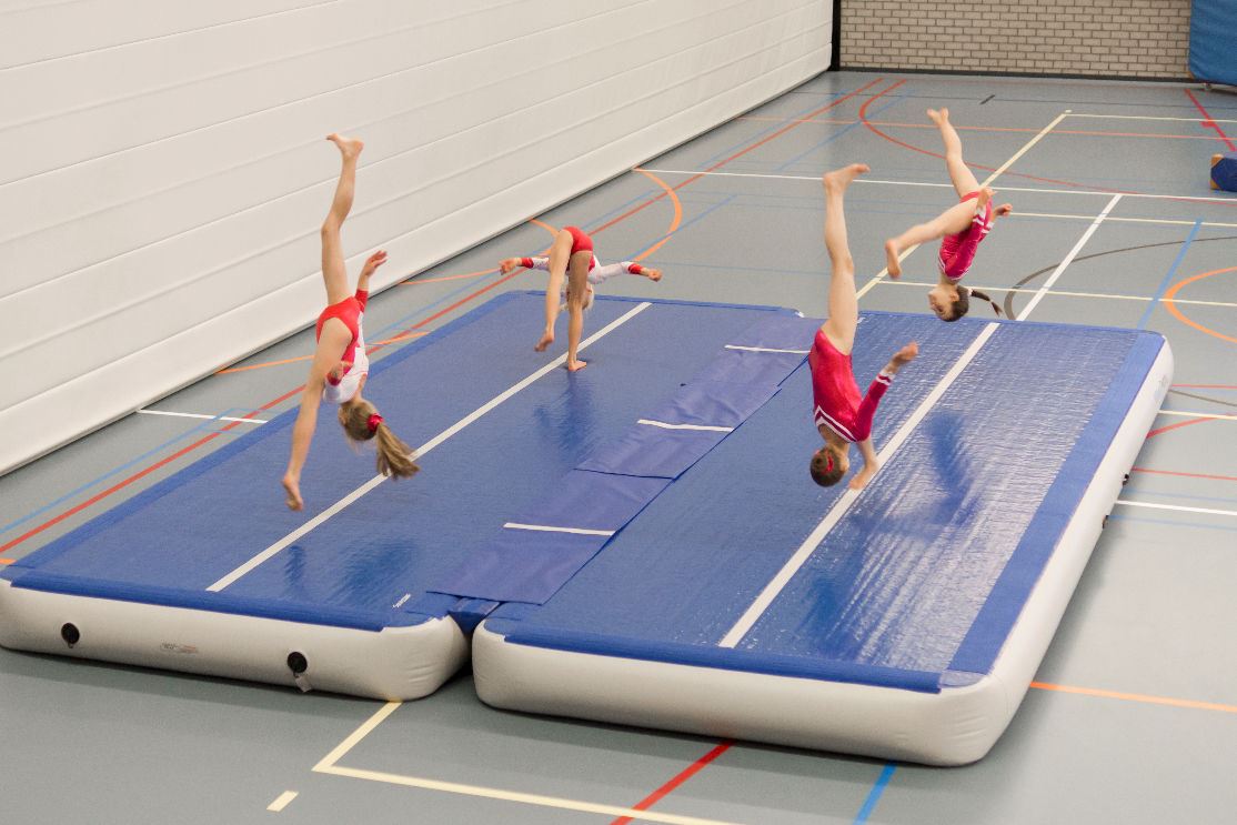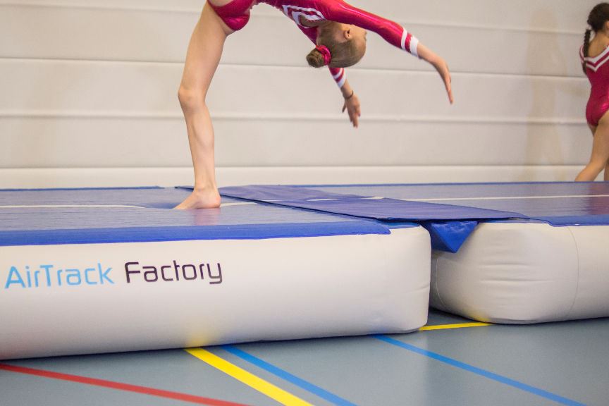 Die Befüllung der Air Track Matte erfolgt durch ein Gebläse, sodass die Bahn schnell auf- und abgebaut werden kann. So wird nur eine kleine Lagerfläche gebraucht. Durch die Menge an Luft, die eingelassen wird, kann der Härtegrad der Matte für verschiedene Übungen und Gewichtsklassen der Sportler angepasst werden.