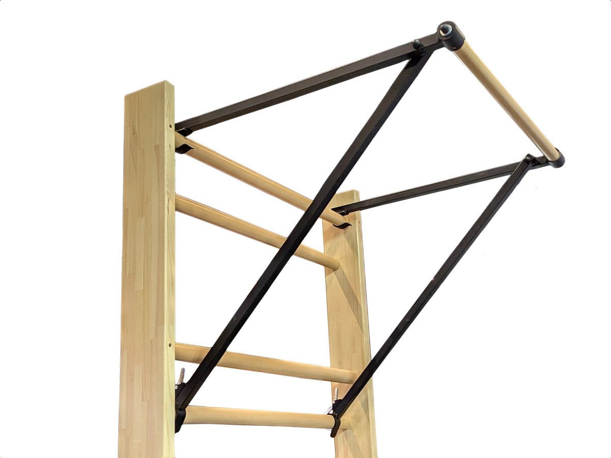 Einfache Montage: Kein Bohren oder Schrauben – die Stange wird einfach in Ihre Sprossenwand eingehängt und sitzt sicher.