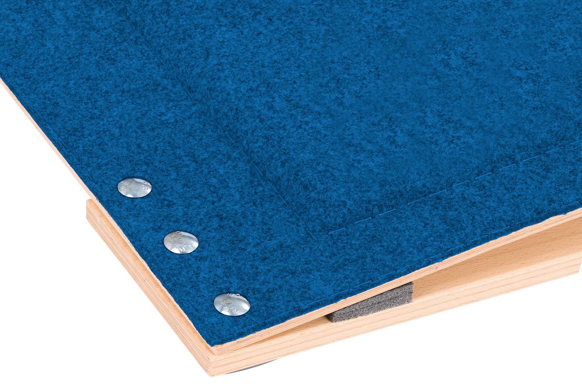 Das Sprungbrett Profi ist die ideale Wahl für fortgeschrittene Turnerinnen und Turner, die Wert auf eine kraftvolle und zuverlässige Unterstützung beim Absprung legen. Ausgestattet mit zwei kegelförmigen Stahlfedern bietet es eine starke, dynamische Federwirkung, während die stabile Holzkonstruktion eine Belastbarkeit bis 90 kg gewährleistet. Die gepolsterte Oberfläche aus strapazierfähigem Nadelfilz sorgt für eine angenehme Dämpfung beim Anlauf und Absprung. Perfekt geeignet für intensives Training im Verein.