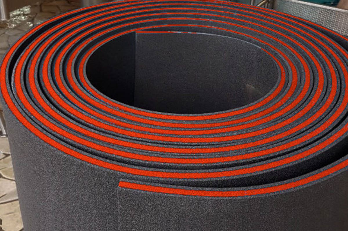 Unsere Wasserlaufmatten aus eigener Produktion bestehen aus geschlossenzelligen Schaumstoffen. Sie sind 12 oder 18 Meter lang und mit einer speziellen Sandwichbauweise konzipiert. Farbe des Schaumstoffes innen kann variieren.
