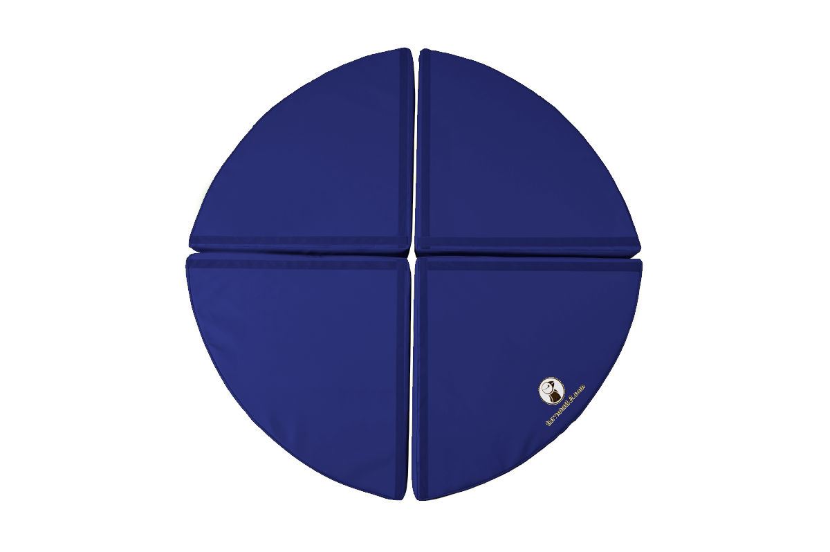Dieser runde Weichboden mit einer Stärke von 10 cm in dunkelblau eignet sich hervorragend zum Spielen, Toben und Turnen für die kleinen und großen Akrobaten. Dank stabiler Klettverbindungen können die Viertelkreise zu zwei Halbkreisen, einem Dreiviertelkreis oder einem Vollkreis verbunden werden. Durch ihre kompakten Abmaße mit einem Durchmesser von 120 cm findet diese Weichbodenmatte fast überall Platz. Die vier Einzelteile lassen sich zudem sehr gut verstauen.
