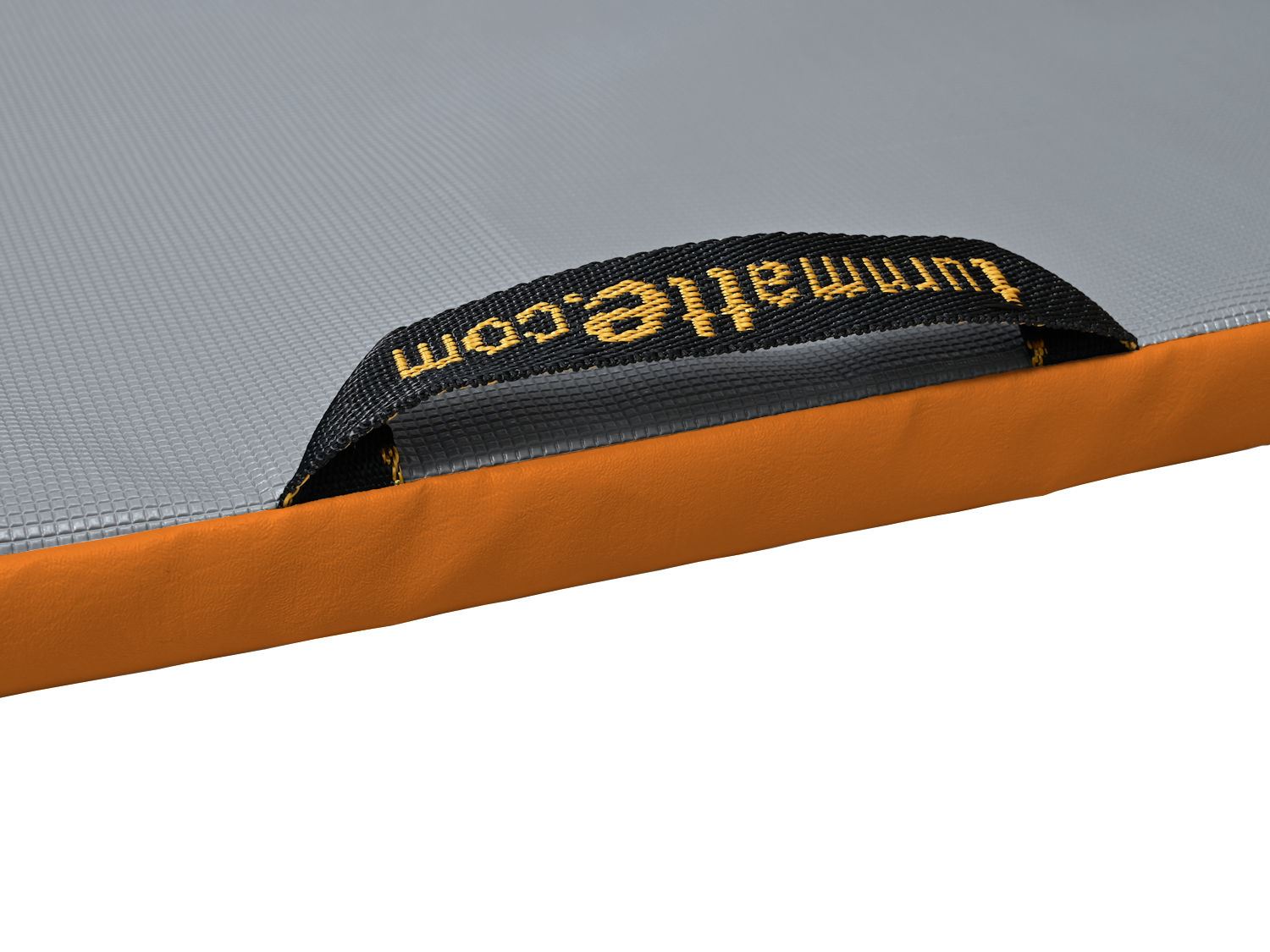 Diese Leichtturnmatte in orange hat zwei Griffe an den jeweils kurzen Seiten. Wenn Sie diese aufeinanderlegen, können Sie die biegsame Matte mit nur einer Hand transportieren. Ihr fester Kern aus VB 100 sorgt für optimalen Kraftabbau bei lediglich 3 cm Stärke, allerdings ist die Matte als Fallschutzmatte nicht geeignet! Diese Turnmatte in den Maßen 100 x 150 cm überzeugt durch ihre optimale Dämpfung, einen angenehmen Bezug und den speziellen Antirutschboden. Wahlweise ist diese Leichtturnmatte mit oder ohne Lederecken und in elf verschiedenen Farben verfügbar. Leichtturnmatten sind die meistverkauften Sportmatten überhaupt.