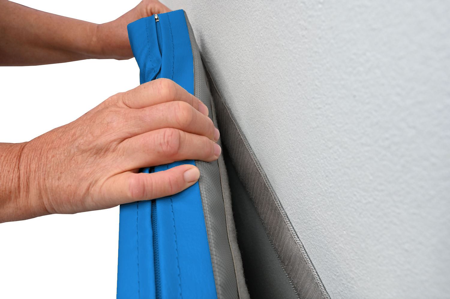 Prallschutzmatten für Wände sowohl für den Innen- als auch für den Außenbereich. Wir stellen die Prallwände entsprechend Ihrer Wünsche her. Mithilfe einer Klettverbindung werden die Matten an der Wand befestigt - die Montage und Demontage ist kinderleicht. Diese Prallwand ist hellblau und hat die Maße 100 x 100 x 6 cm.