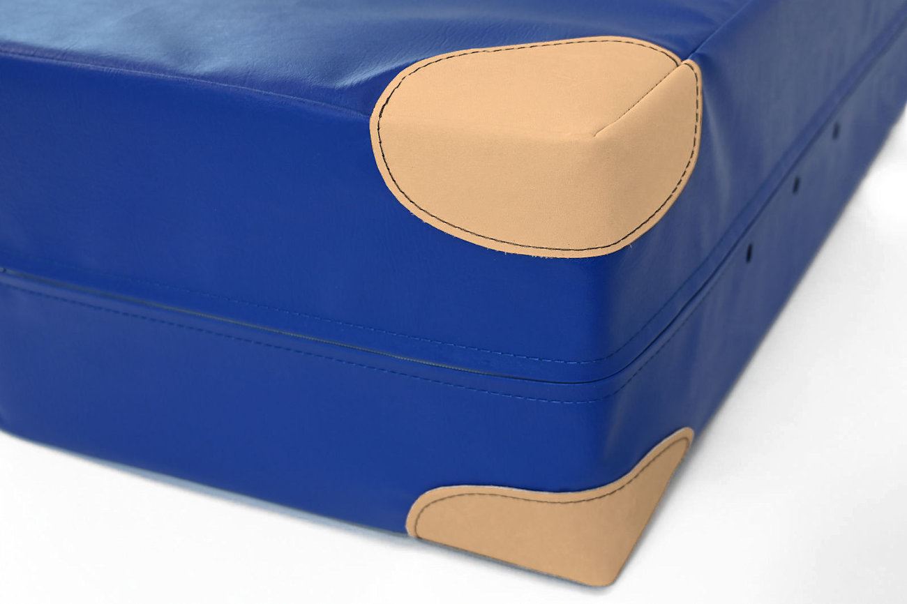 Die Bezüge unserer Weichbodenmatten werden aus robustem Planenstoff hergestellt. Der Boden ist aus Antirutschmaterial für beste Rutschfestigkeit und noch mehr Sicherheit beim Turnen. Die Turnmatten – Bezüge sind angenehm strukturiert und sehr gut zu reinigen. Außerdem sind sie frei von sämtlichen Arten von Weichmachern (also komplett phthalatfrei).