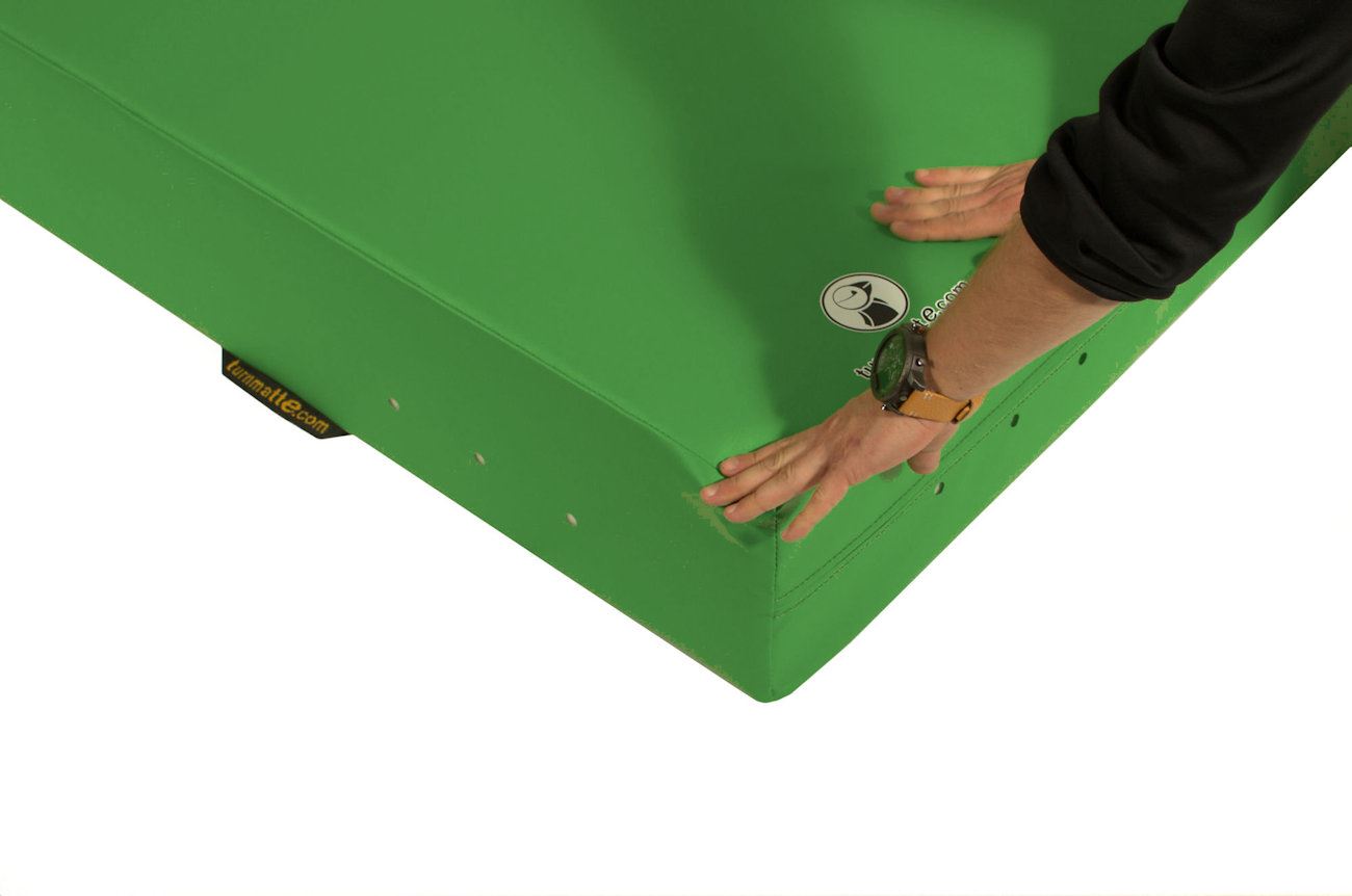 Unserer Weichbodenmatten klappbar bestehen aus hochwertigem, phthalatfreiem Planenstoff. Die verstärkte Klappkante garantiert eine stabile und langanhaltende Verbindung der beiden Hälften.