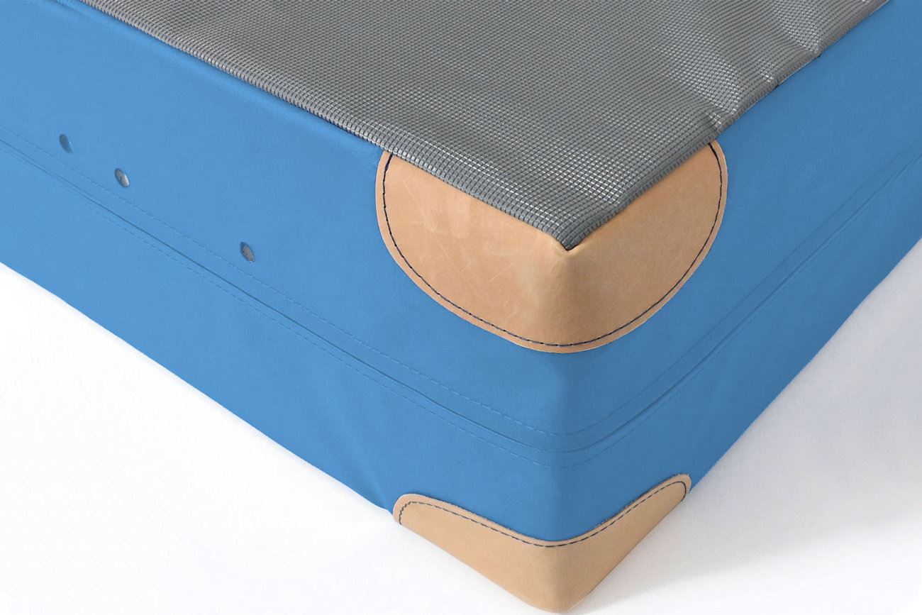 Die Bezüge unserer Weichbodenmatten bestehen aus Planenstoff, mit einem Antirutschmaterial unten. Dieser Boden sorgt für ein hohes Maß an Rutschfestigkeit beim Turnen. Der Werterhaltung dienen die mit dem Boden und dem Bezug stabil vernähten Lederecken.
