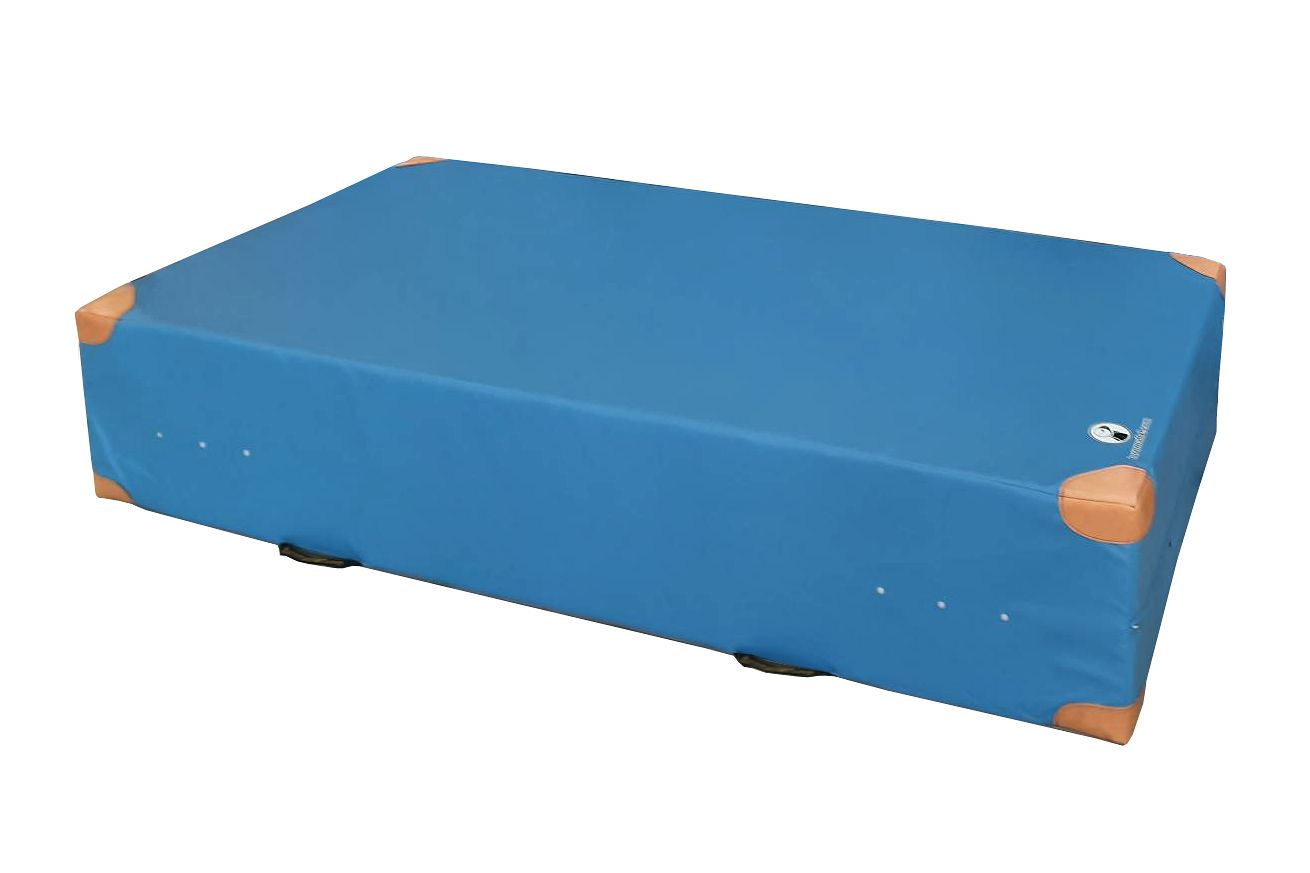 Diese Weichbodenmatte in hellblau ist vielseitig einsetzbar in Kindergarten, Schule, Sportverein und auch zu Hause. Der Weichboden garantiert sicheren Spaß beim Toben und Trainieren. Diese 200 x 100 cm große Matte ist 25 cm stark und besitzt vier Tragegriffe für den einfachen Transport. Die acht Lederecken aus Echtleder sorgen für eine besonders lange Lebensdauer. Die Entlüftungen an den Seiten ermöglichen eine rückstoßfreie Dämpfung. Der phthalatfreie Bezug kann mit Seifenlauge gereinigt werden.