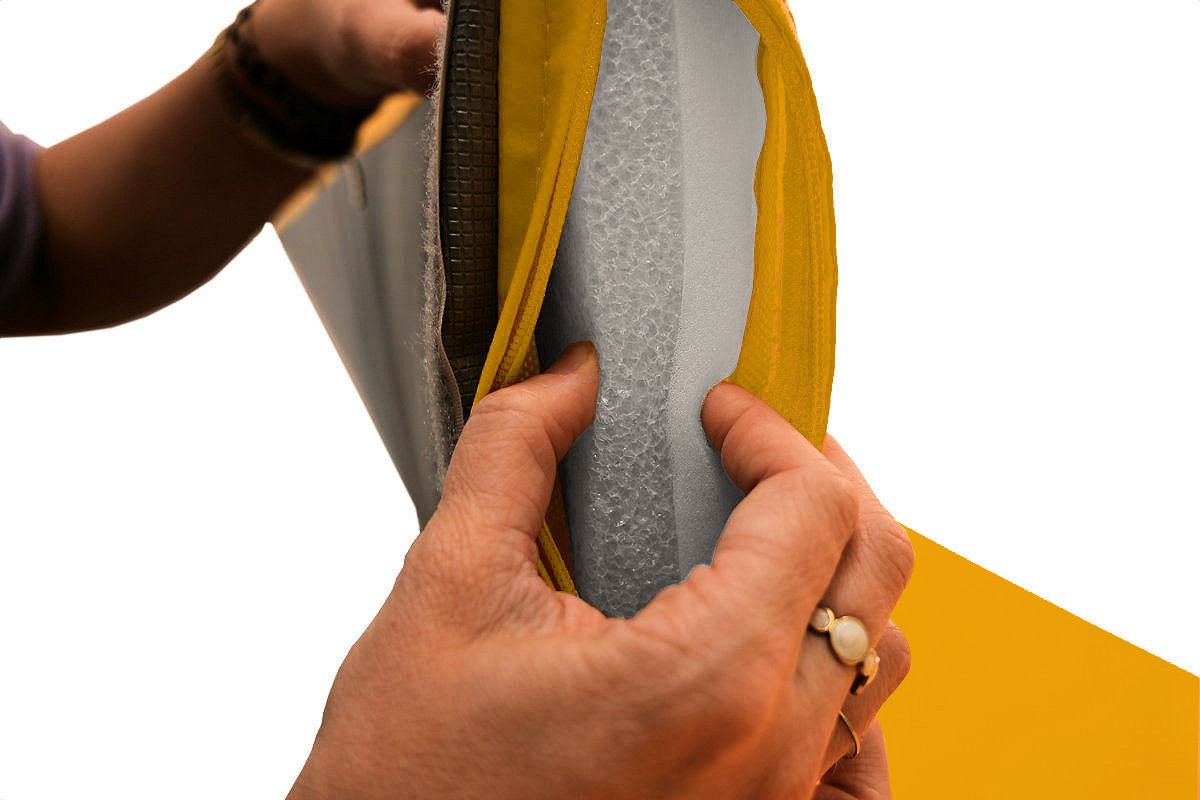 Der Bezug ist pflegeleicht und strapazierfähig, die obere Polsterung angenehm weich, aber formstabil dank Sandwichbauweise. Ob beim Dehnen, Toben oder Relaxen - mit der 4-JOY liegst du immer richtig.