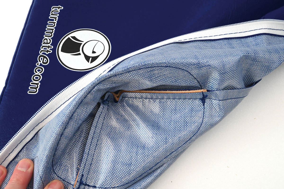 Dieser Ersatzbezug in dunkelblau ist für eine Leichtturnmatte in den Maßen 100 x 150 cm mit einem Kern von 3 cm Stärke geeignet. Der Bezug hat zwei Griffe an den jeweils kurzen Seiten. Der Bezug aus angenehmem Leichtplanenstoff lässt sich leicht reinigen und besitzt einen speziellen Antirutschboden. Wahlweise ist dieser Bezug mit oder ohne Lederecken und in elf verschiedenen Farben verfügbar.