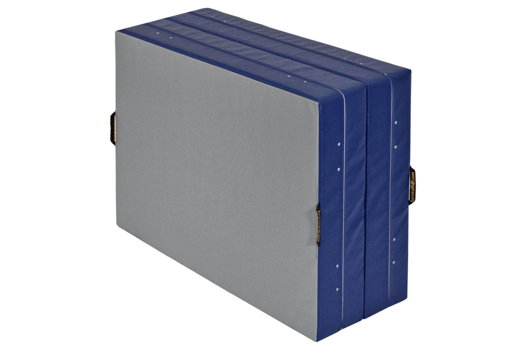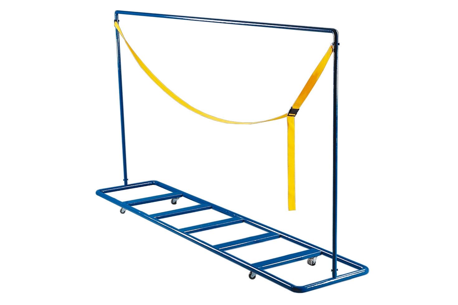 Der Mattentransportwagen "MAXI KING" von Bänfer ist passend für 4 Weichbodenmatten in der Größe 300 x 200 x 30 cm. Für platzsparende Mattenaufbewahrung und schnellen Auf- und Abbau. Der Rahmen besteht aus stabilem Vierkantrohr und der Wagen ist mit 4 Doppellenkrollen aus Gummi ausgestattet. Diese sind für punktelastische Böden geeignet.