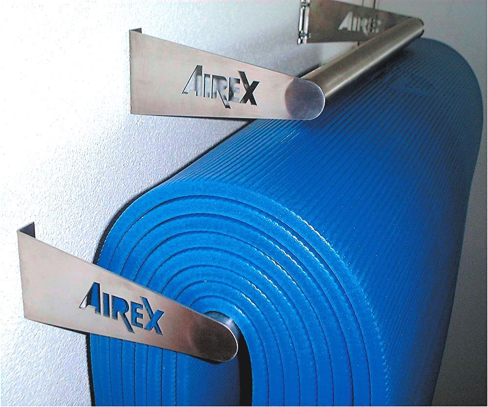 Auf dieser Wandhalterung von Airex können Sie Matten mit einer maximalen Breite von 60 cm lagern.
